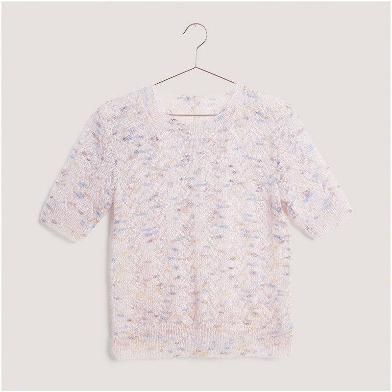 Le Modèle n°12 du magazine Lovewool 18 de Rico Design est un choix parfait pour les adeptes du tricot cherchant à réaliser un pull ajouré sophistiqué. Ce modèle offre une combinaison harmonieuse entre la délicatesse des pépites de confettis et le motif ajouré. Le pull présente une petite patte de boutonnage au dos, ajoutant une touche de charme supplémentaire à cette création unique.