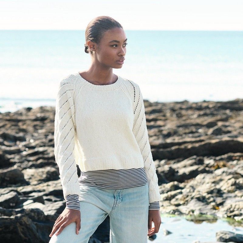 Un pull élégant et moderne, avec un magnifique motif ajouré sur les manches, pour un effet raffiné et légèrement structuré.