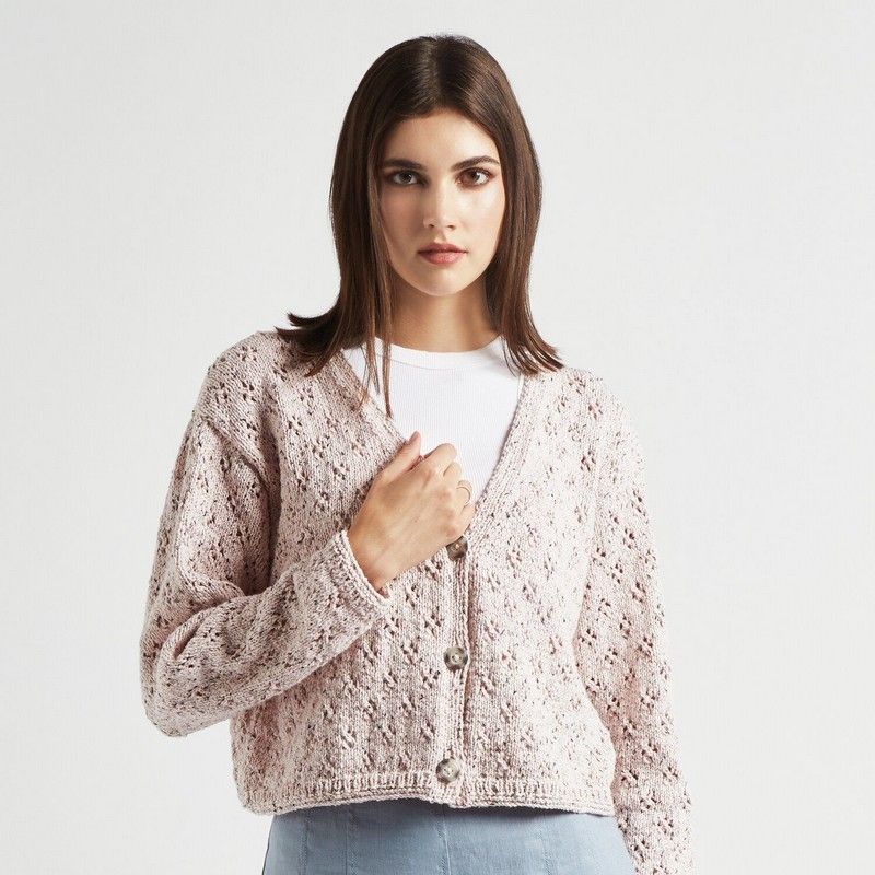 Ce modèle se distingue par son motif ajouré raffiné, rehaussé par le fil Creative Make It Tweed Glitz qui associe un effet tweed à de subtiles paillettes scintillantes.