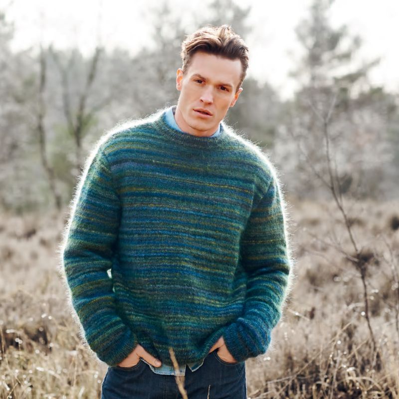 Avec sa coupe droite et son encolure ronde, ce pull pour homme combine confort et style. Tricoté dans le fil Fashion Meri Mohair Print, il se distingue par un effet rayé dégradé subtil, une texture douce et légèrement duveteuse, et un tombé souple qui le rend agréable à porter au quotidien.