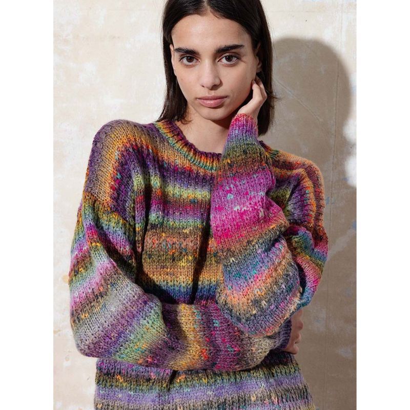 Le pull WENKE est un modèle féminin et raffiné à tricoter dans le fil Magnolia de Lang Yarns, un fil dégradé en laine mérinos extra-fine. Ce fil léger et lumineux offre un effet multicolore fluide qui se déploie naturellement au fil du tricot. Le pull présente une coupe moderne à manches longues et un tombé souple, parfait pour les mi-saisons.