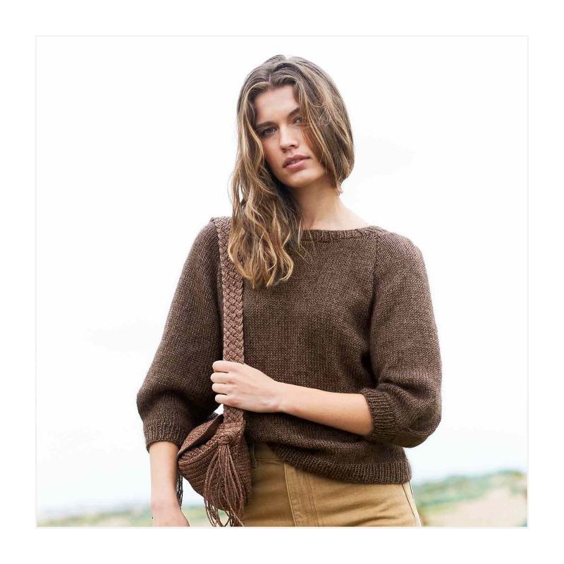 Pull tricoté en fil double mélangeant la douceur du coton au fil duveteux en mohair et soie pour un résultat moelleux et tout doux.