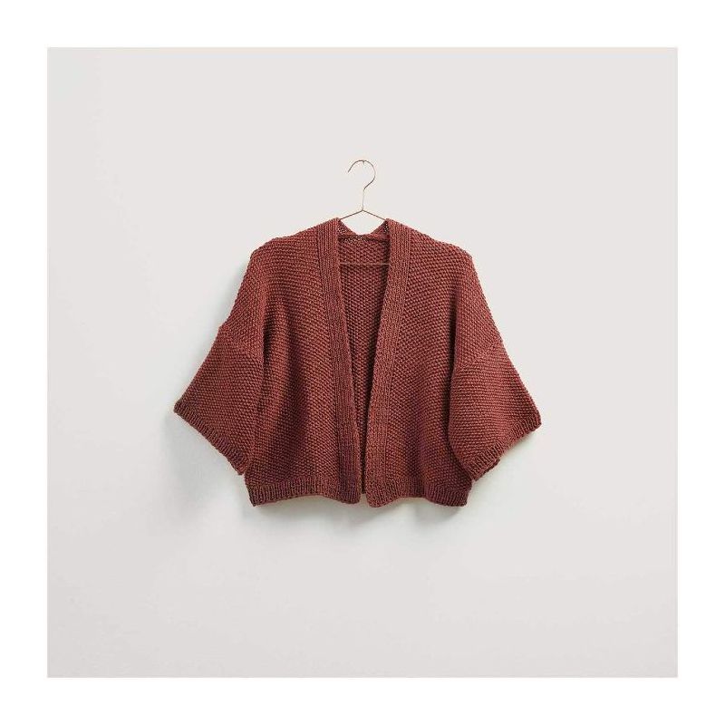 Gilet kimono aux manches extra larges à tricoter au point de riz dans le fil 100% coton Creative cotton aran de Rico Design.