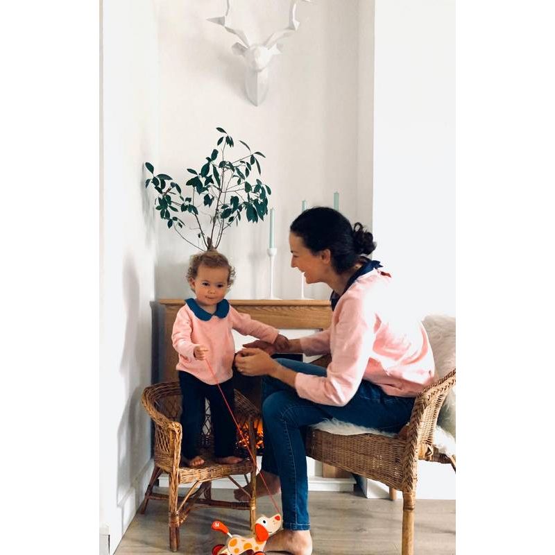Élégant sweat pour petites filles avec son col claudine et sa fermeture goutte dans le dos.