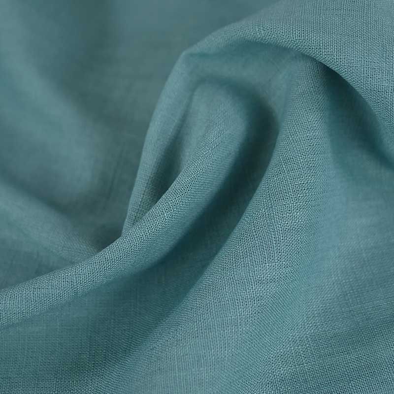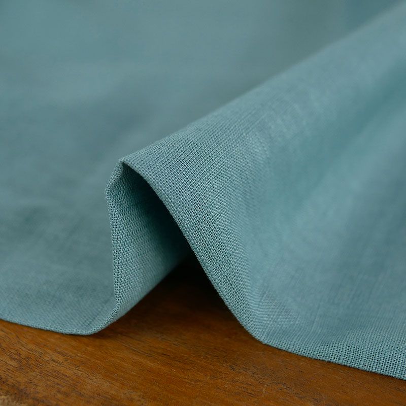 D'une jolie teinte bleu-vert, ce tissu lin apportera une touche de fraîcheur à vos futures créations.