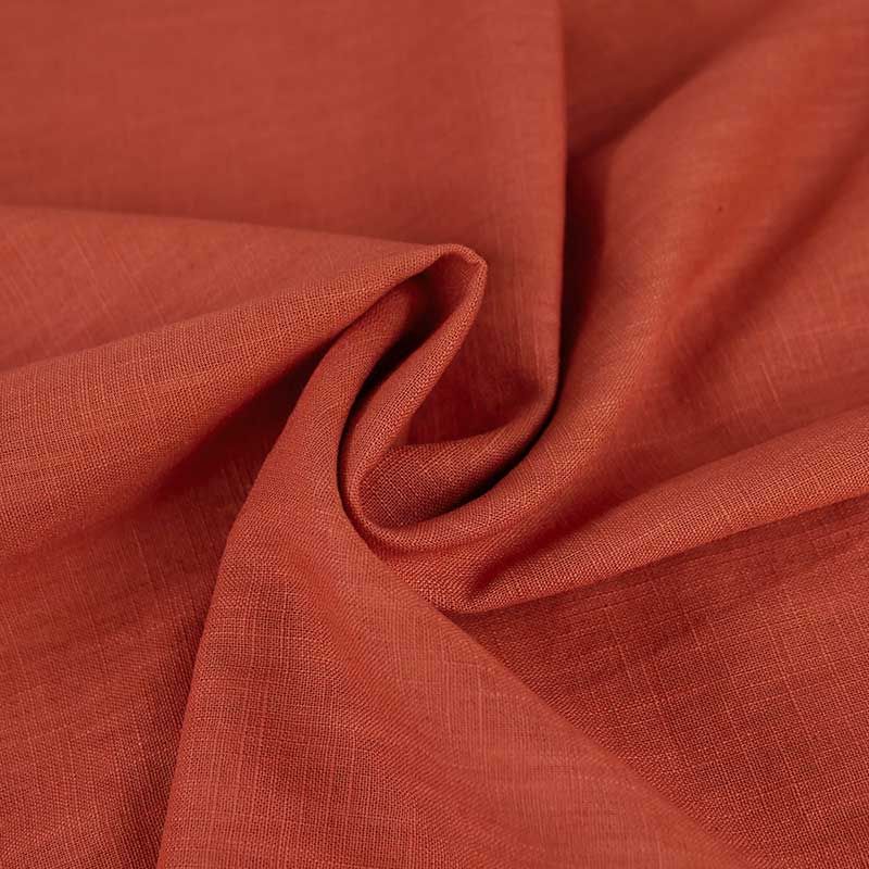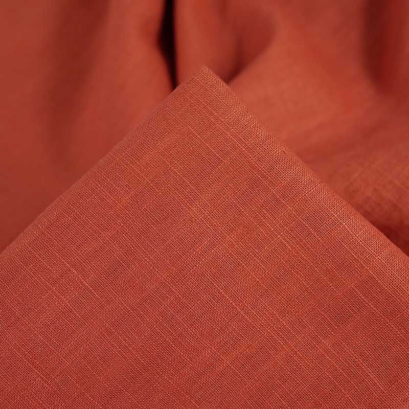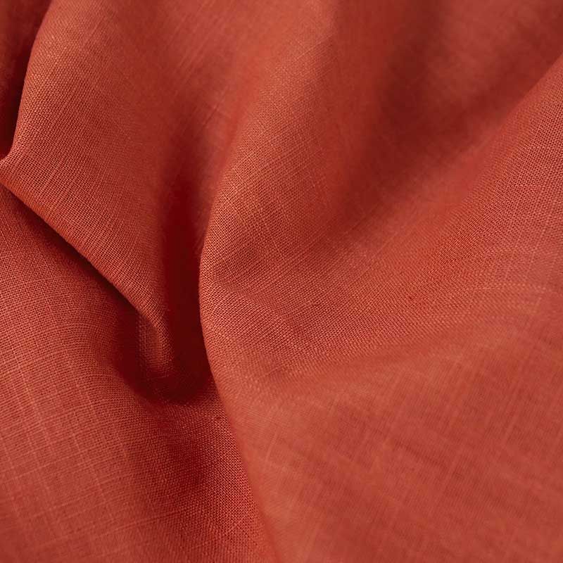 Très beau tissu 100% lin, proposant une jolie couleur automnale. Il s'agit en effet d'un orange foncé chaleureux, qui mettra de la couleur à votre vestiaire, ou à votre décoration.