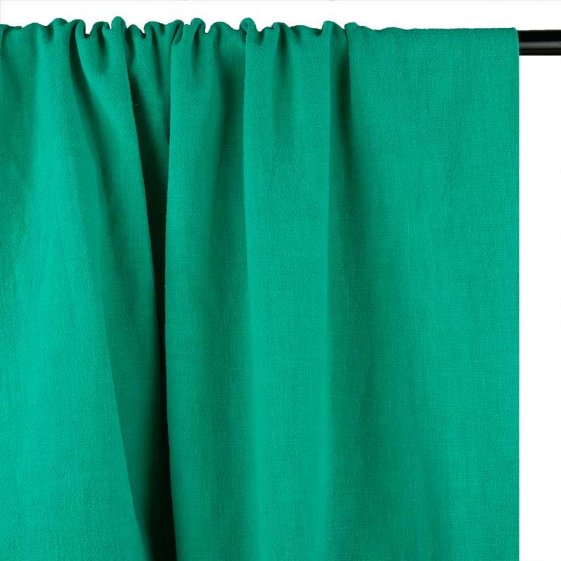 Tissu en lin lavé, dans une superbe couleur vive et lumineuse, vert émeraude. Ce tissu, plus fluide et doux qu'un lin classique, est une alternative idéale pour votre décoration d'intérieur ou vos vêtements estivaux.