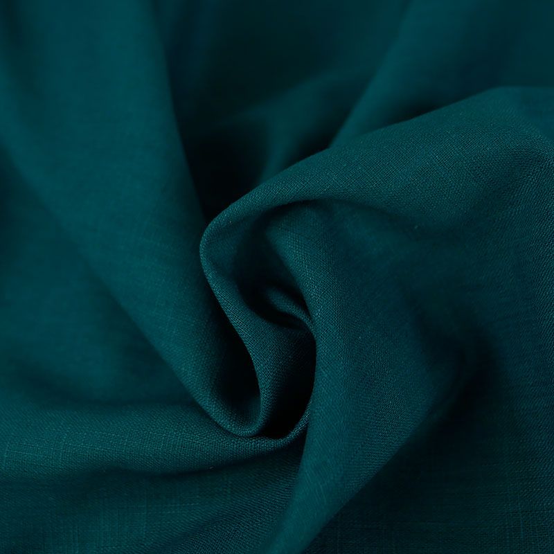 Tissu 100% ramie bleu canard, semblable au toucher du lin.