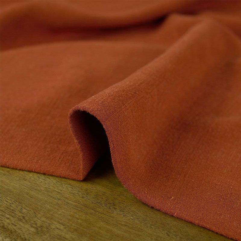 Ce tissu mélange viscose et lin de couleur tomette est fluide, doux et agréable.