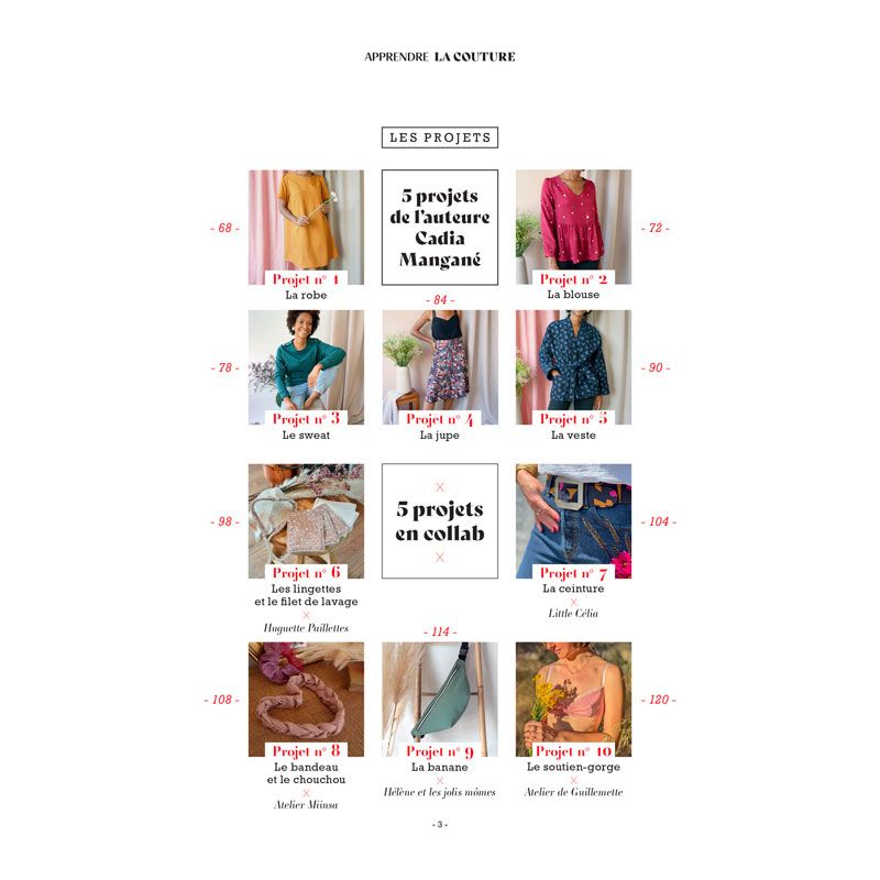 Elle vous accompagne au cours de 10 leçons de base et 10 projets, afin de vous familiariser doucement avec votre machine à coudre.