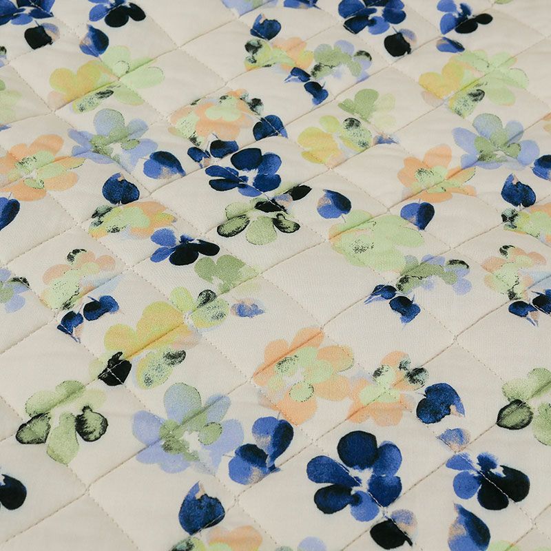 Tissu matelassé à motifs fleurs pochoirs - écru
