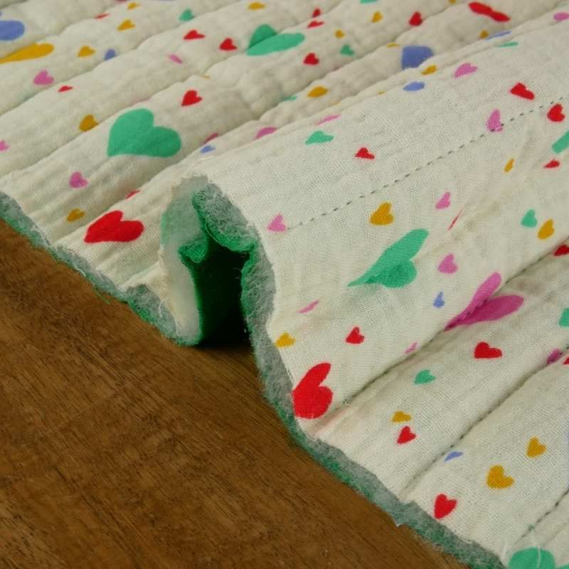 Double gaze matelassée réversible à cœurs multicolore