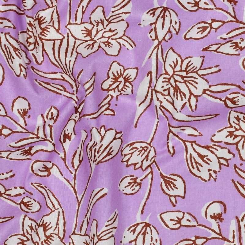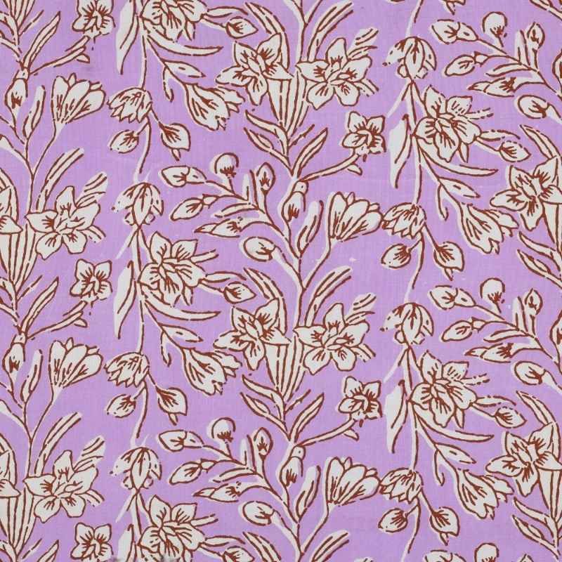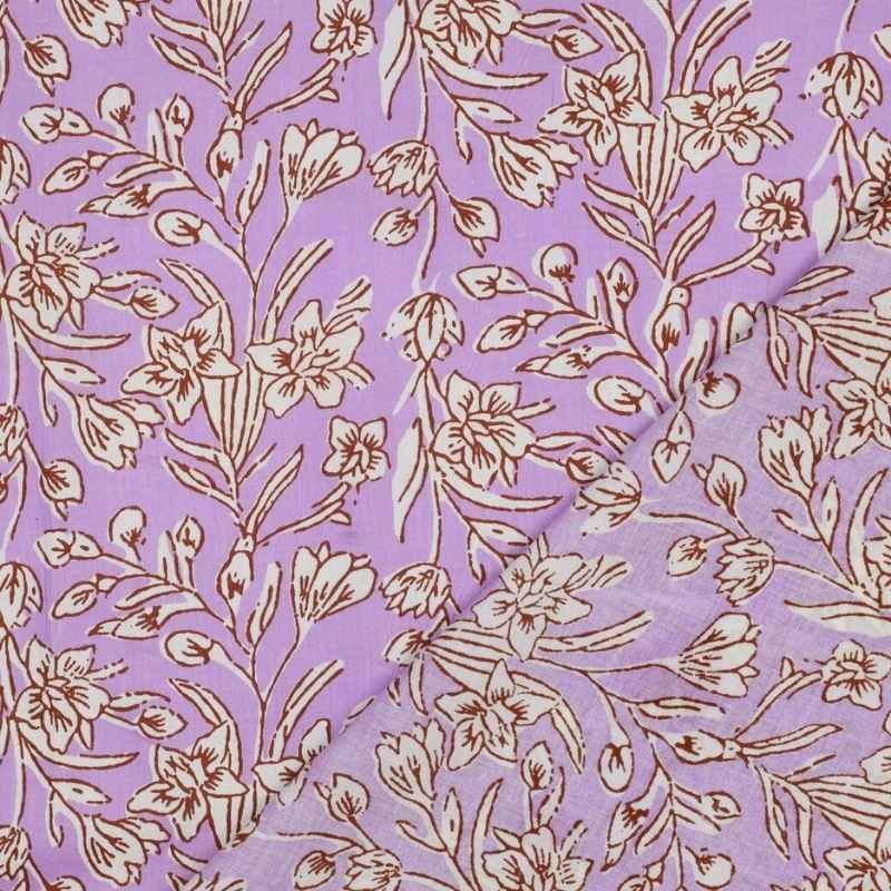Popeline de coton indienne imprimée à la main motif fleurs lilas