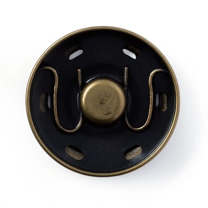 Optez pour une fermeture robuste et stylée avec ce bouton pression en métal bronze de 30 mm.