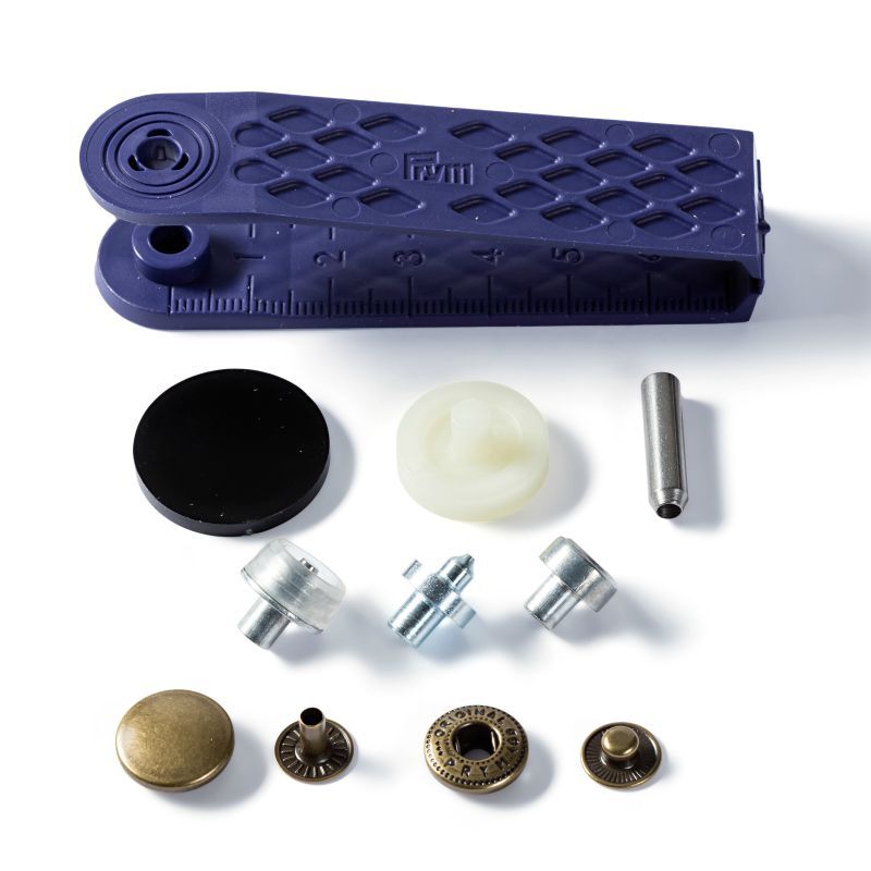 Boutons pressions en métal diamètre 15 mm de la marque Prym à poser sans couture avec un outil livré avec. Vous pourrez poser les pressions à l'aide d'un marteau ou à l'aide de votre pince Vario Prym