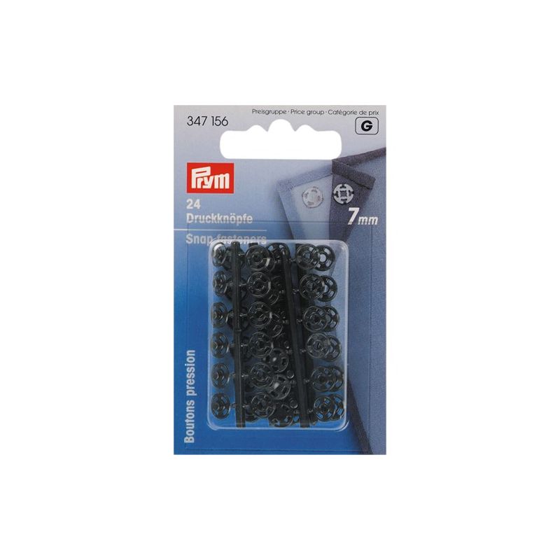 Assortiments de 24 boutons pression légers en plastique noir de 7 mm de diamètre à coudre à la main.