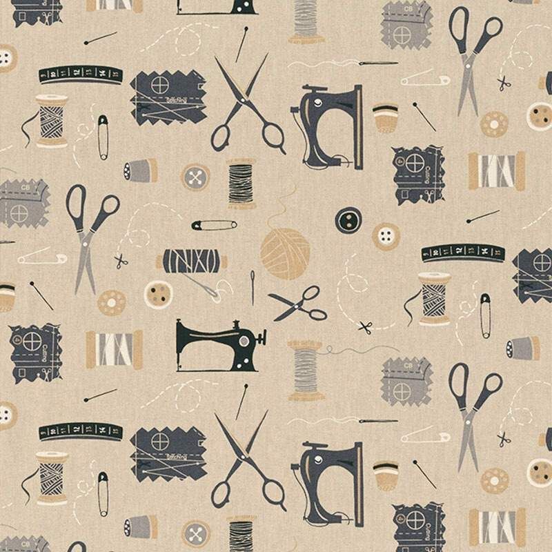 Tissu demi-natté canvas motifs couture - beige x 10 cm