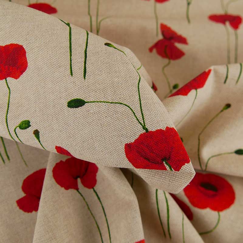 Toile coton effet lin imprimé coquelicots pour sacs et déco