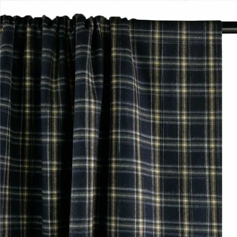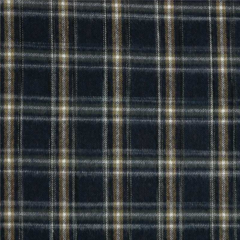 Lancez-vous dans la création de pièces douces et durables, avec cette superbe flanelle de coton. Un tissu de grande qualité, proposant un délicat motif tartan, beige, blanc et kaki, sur fond bleu foncé.