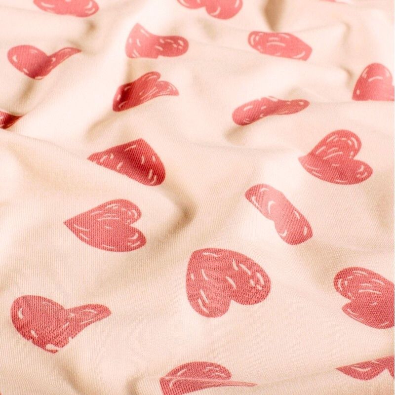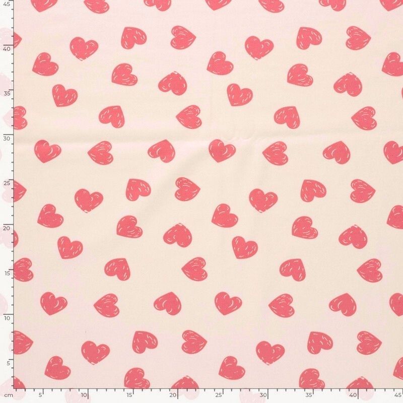 Tissu en jersey de coton fin Oeko-Tex motifs coeurs rose