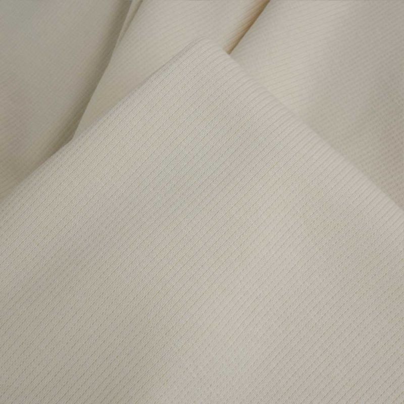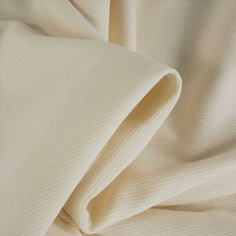 Ce tissu en jersey côtelé se distingue par ses fines côtes régulières qui structurent la maille tout en conservant une grande souplesse. Son toucher doux et son confort en font un choix idéal pour des vêtements décontractés agréables à porter tout au long de la journée.