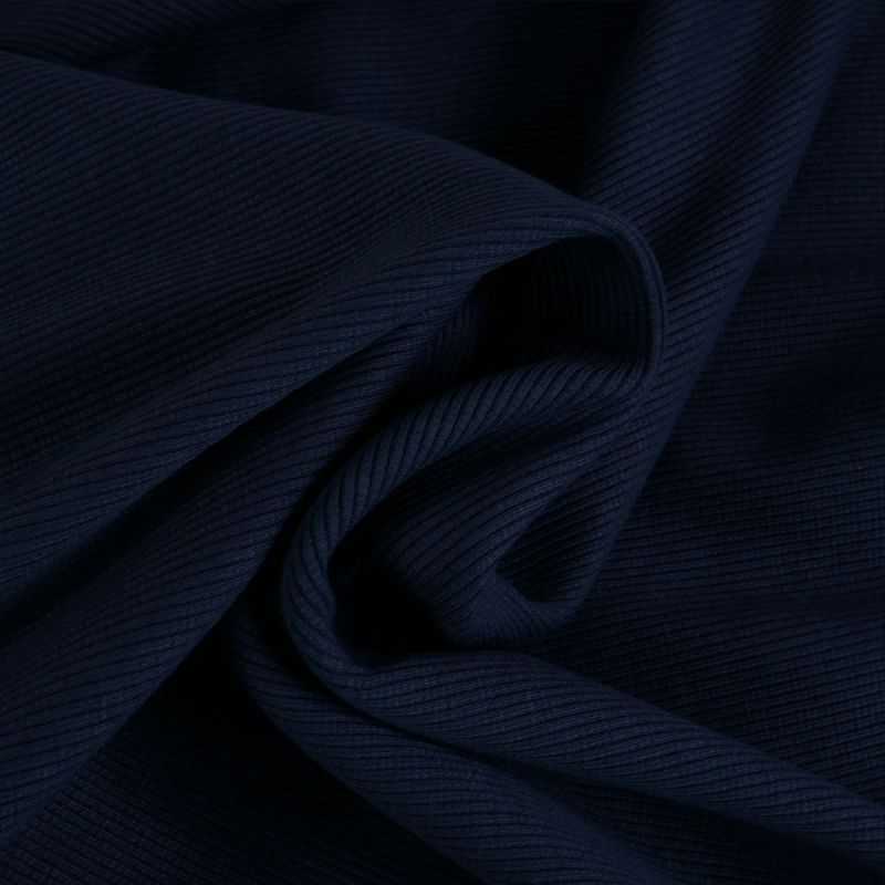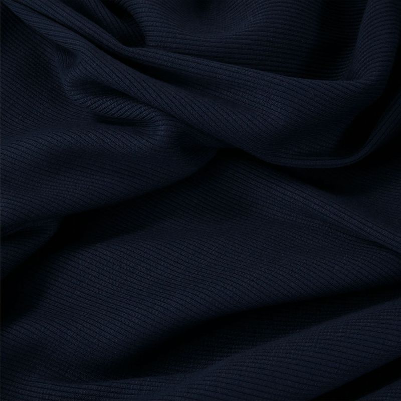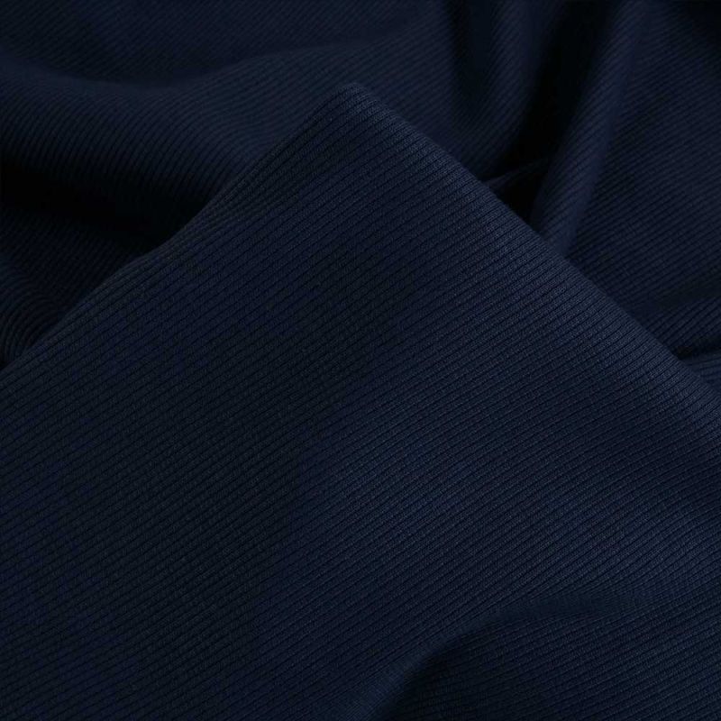 Ce jersey côtelé bleu marine est un essentiel facile à intégrer dans une garde robe confortable. Sa couleur profonde s’associe facilement avec des jerseys imprimés ou des teintes claires. Pour de belles finitions, vous pouvez utiliser des bords côtes ou un biais en jersey.