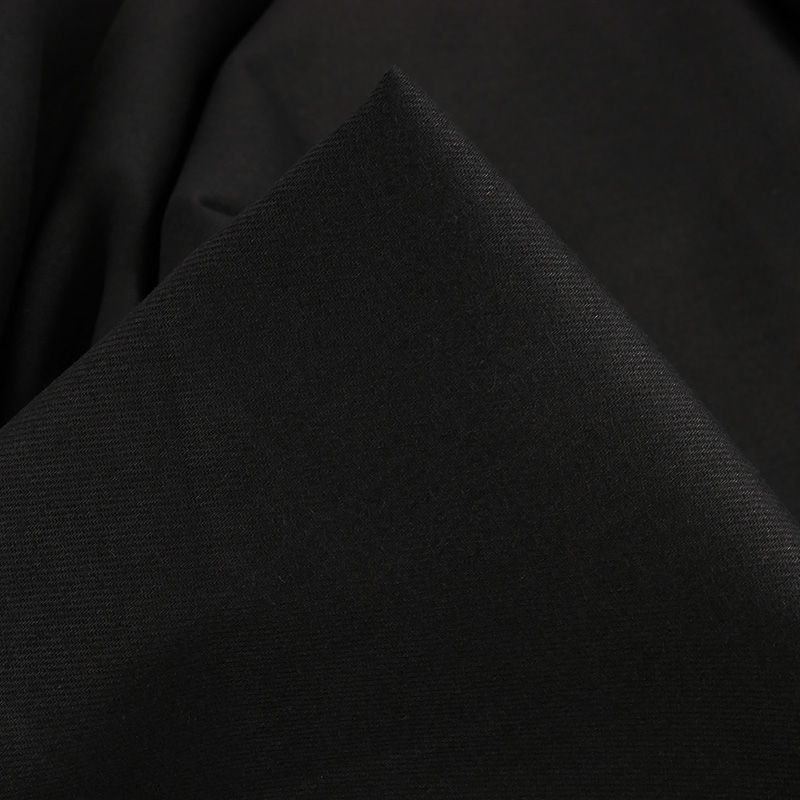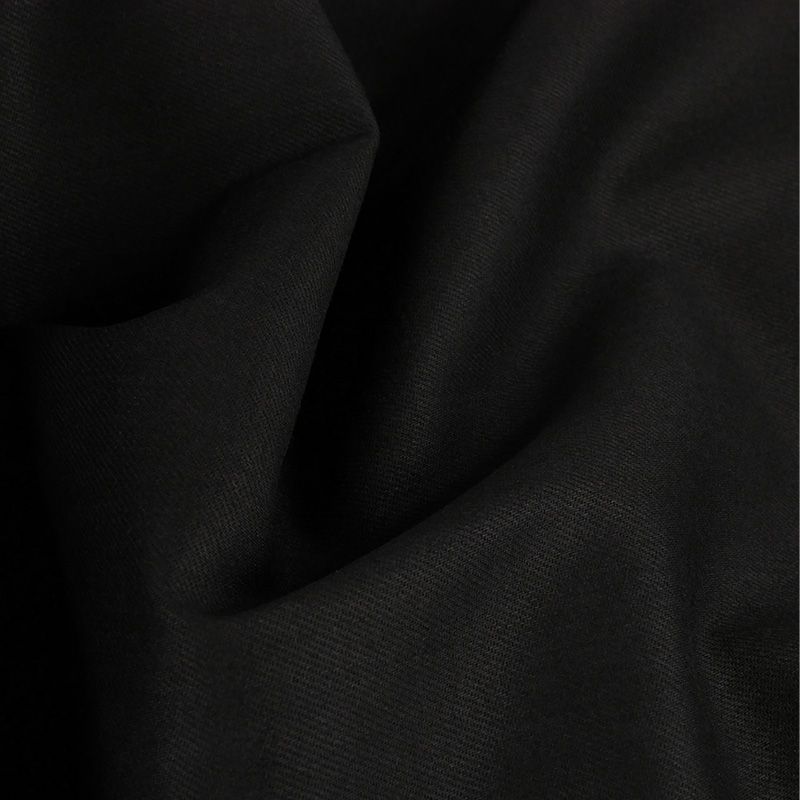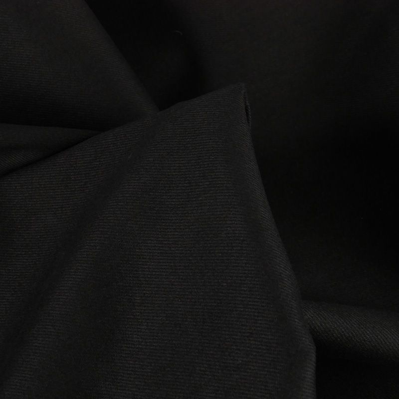 Denim en 100% coton, issu d'une fin de stock de maison de haute couture. De couleur noir mat, on le distingue par son robuste et traditionnel tissage en sergé.