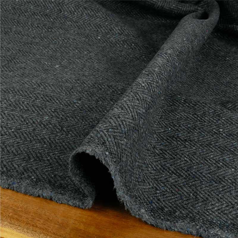 Tissu lainage chevrons tweed haute couture - gris anthracite x 10 cm