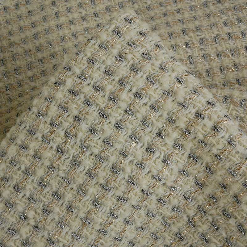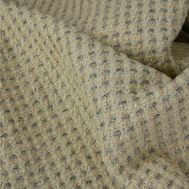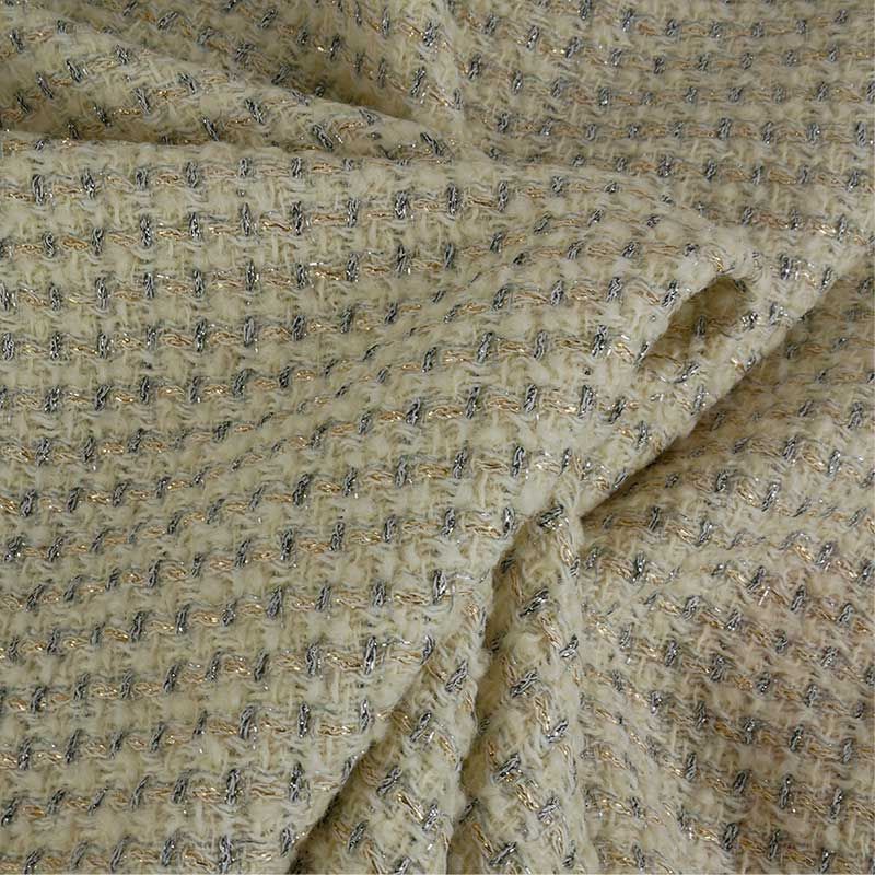Tissu lainage tweed lurex haute couture - écru x 10 cm