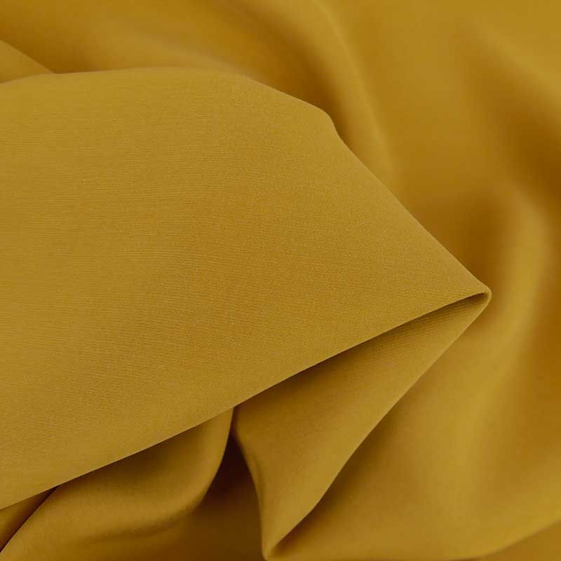 Souple, léger et extrêmement doux, ce tissu en cupro et viscose possède une très belle texture et une couleur jaune ocre chaleureuse.
