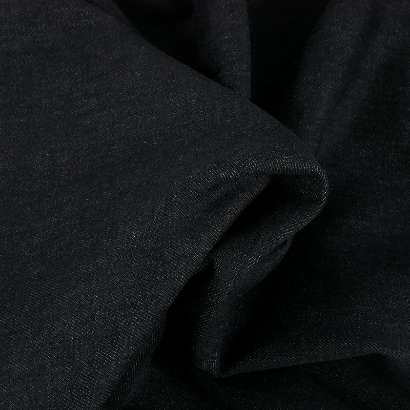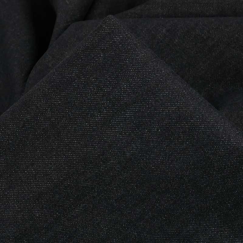 Craquez pour ce denim noir haute couture, au tissage sergé et à la texture souple et structurée. Il s'agit du parfait jean denim, confectionné à partir d'un tissage de fils blancs et noirs.