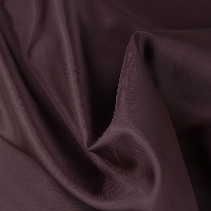 Tissu fin et lisse, en viscose, possédant un effet satiné et une douceur idéale pour faire office de doublure. Sa couleur est un violet foncé aubergine.