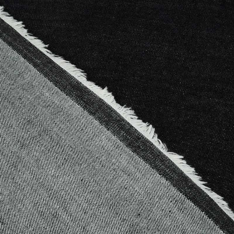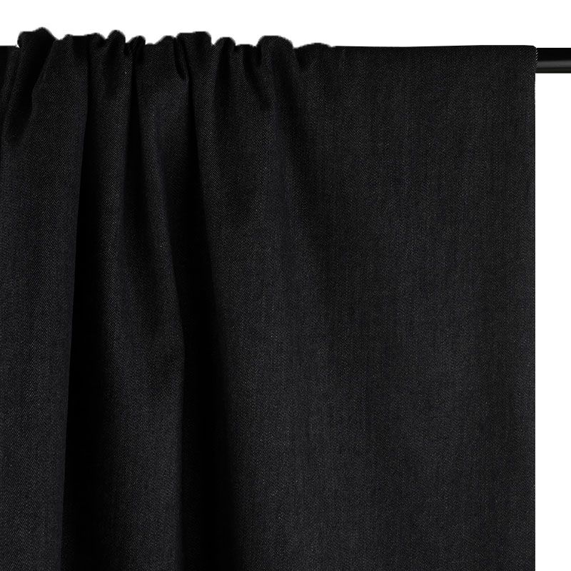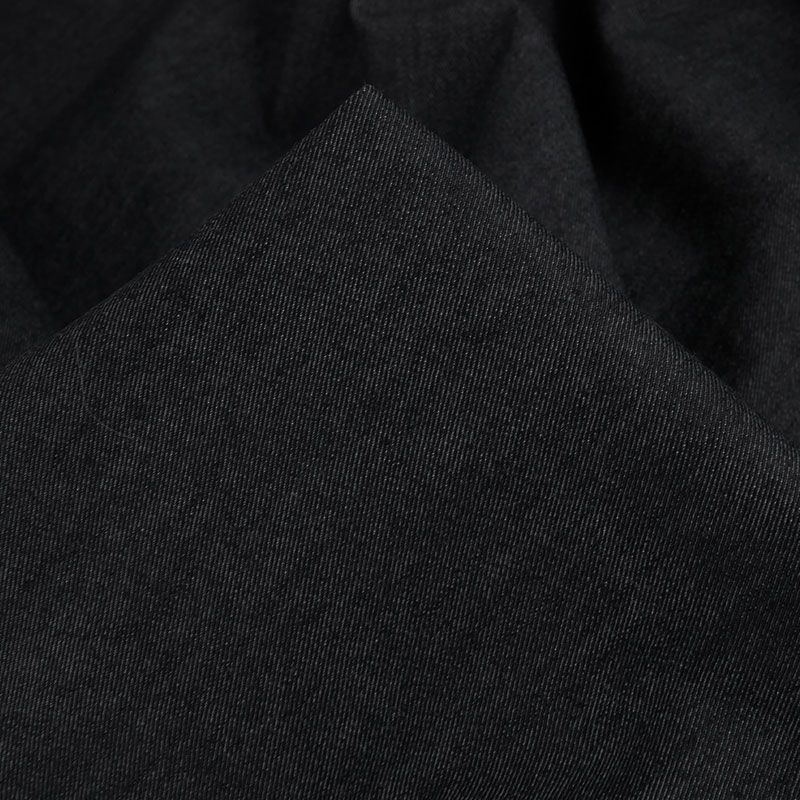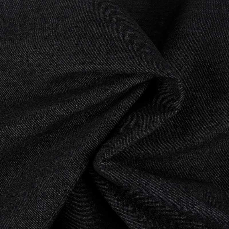 Denim en coton et élasthanne, d'épaisseur moyenne et confortable. Ce tissu noir à l'aspect chiné, est particulièrement apprécié pour réaliser des pièces souples et agréables à porter.