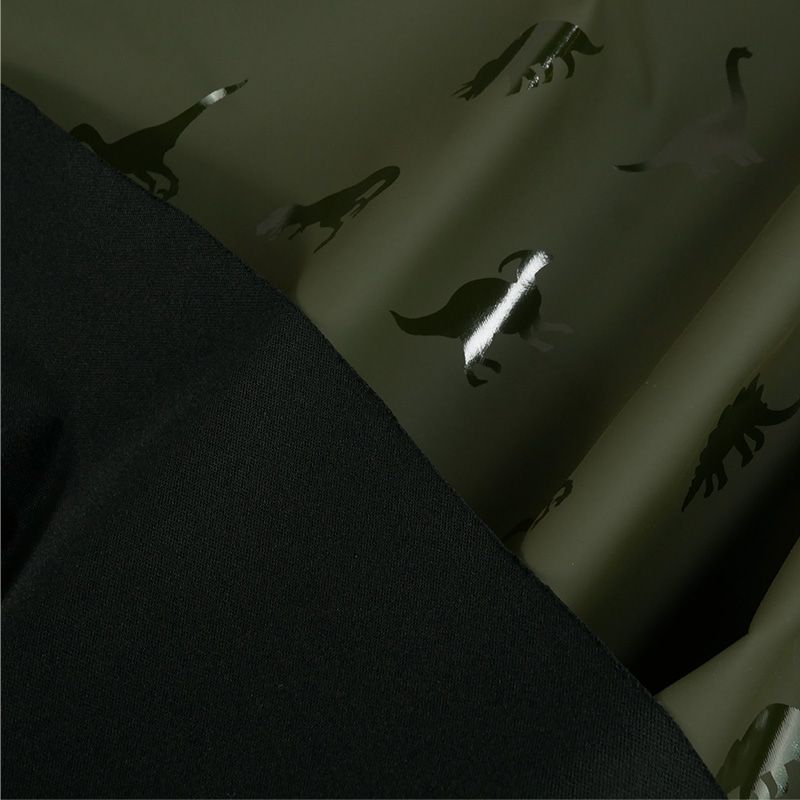 Tissu imperméable souple à motifs dinosaures - vert kaki