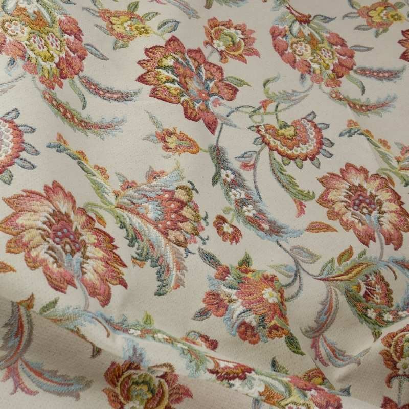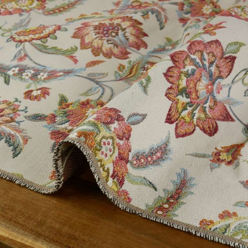 Tissu jacquard gobelin fleurs indiennes - écru x 10 cm