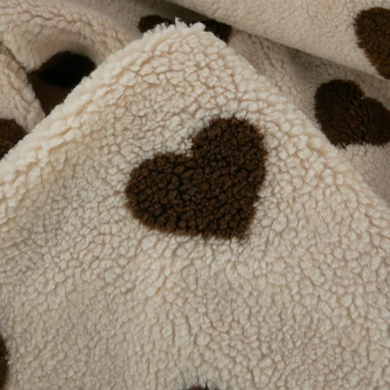 Vous craquerez ou pas ? Ce teddy molletonné est un choix idéal pour créer des pièces délicates et amusantes. Sur un fond teddy mouton couleur écru, les cœurs sont imprimés en contraste, dans une couleur marron chocolat.