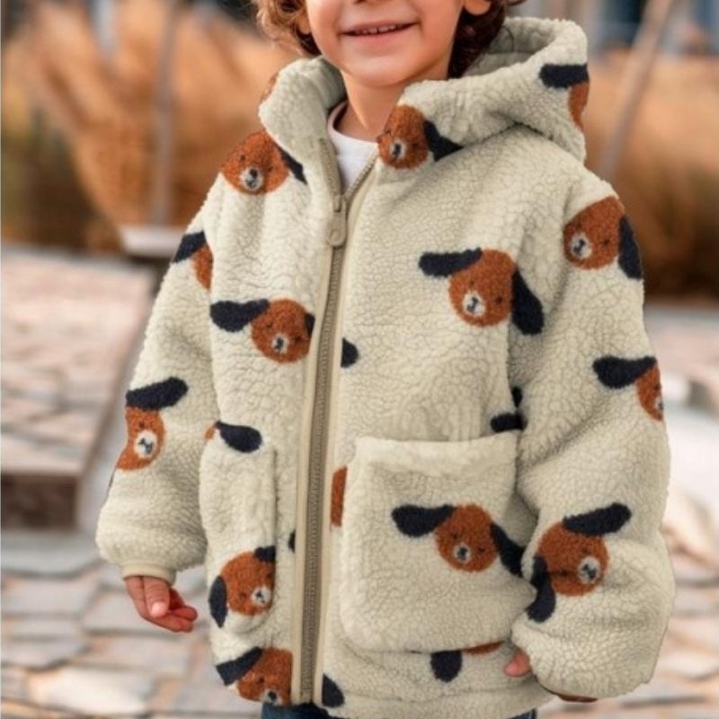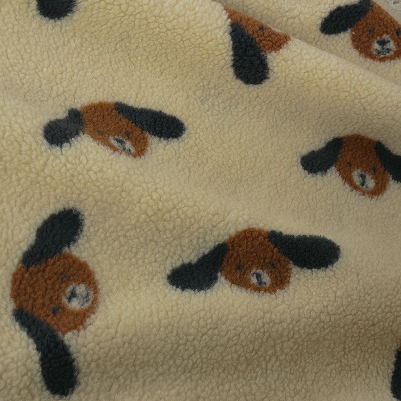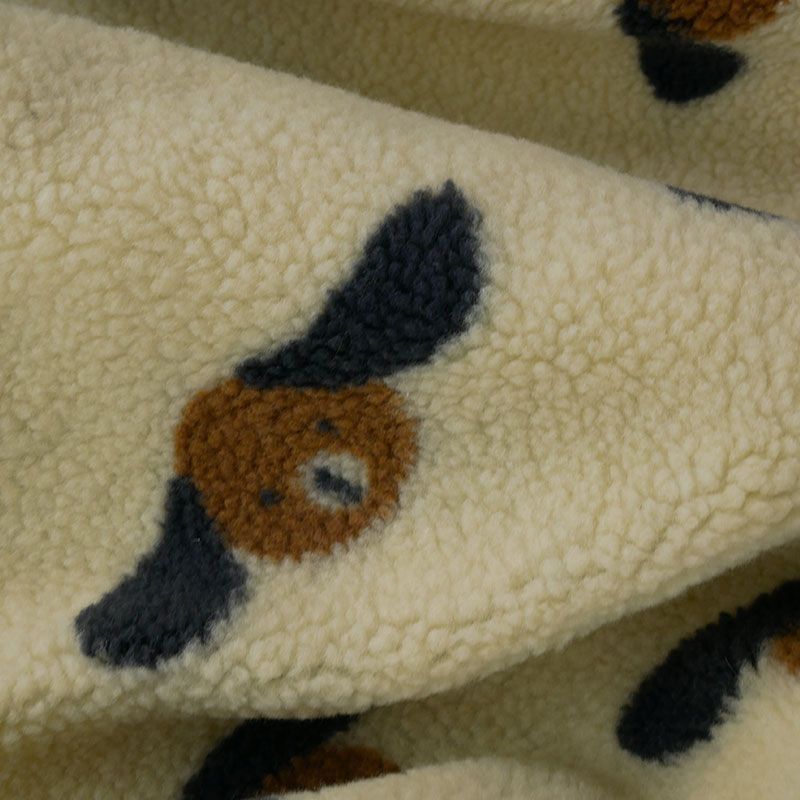 Tissu fausse fourrure sherpa chiens - écru x 10 cm