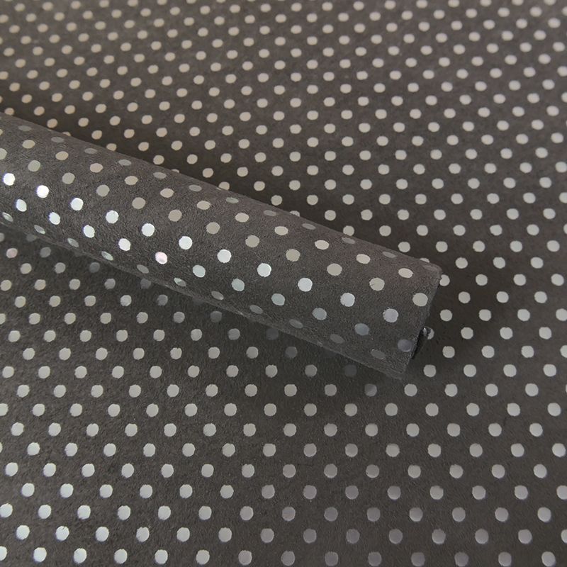 Coupon de cuir de chèvre gris de qualité supérieure avec jolie finition à motifs pois argentés.
