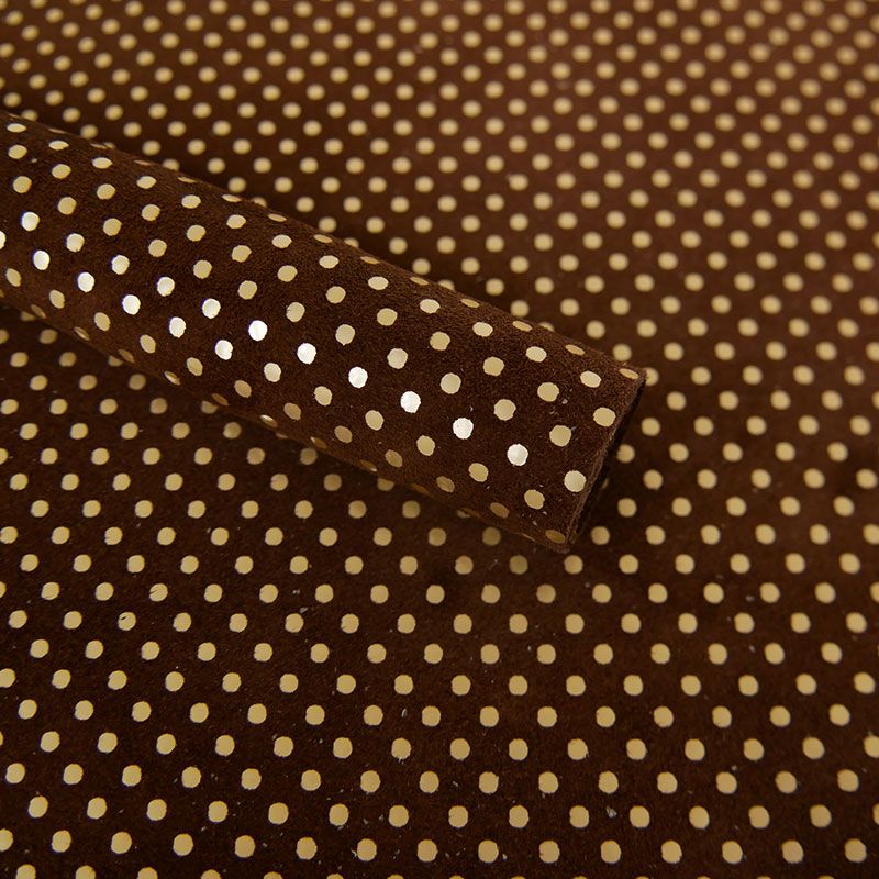 Coupon de cuir de chèvre marron de qualité supérieure avec jolie finition à motifs pois or mat.