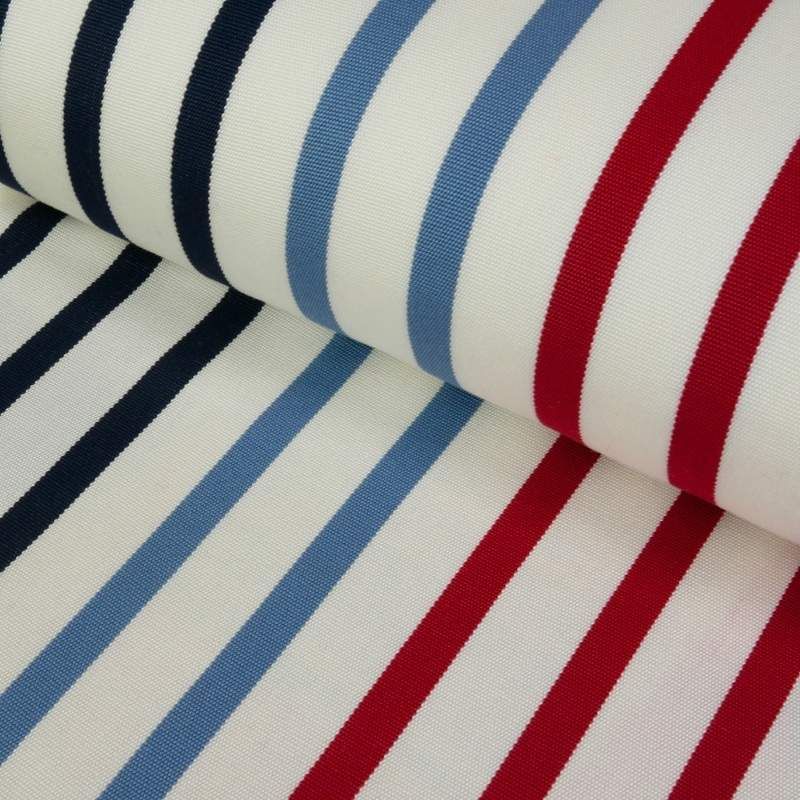Optez pour cet imprimé marinière intemporel, composé de rayures rouges, bleues et bleu marine.