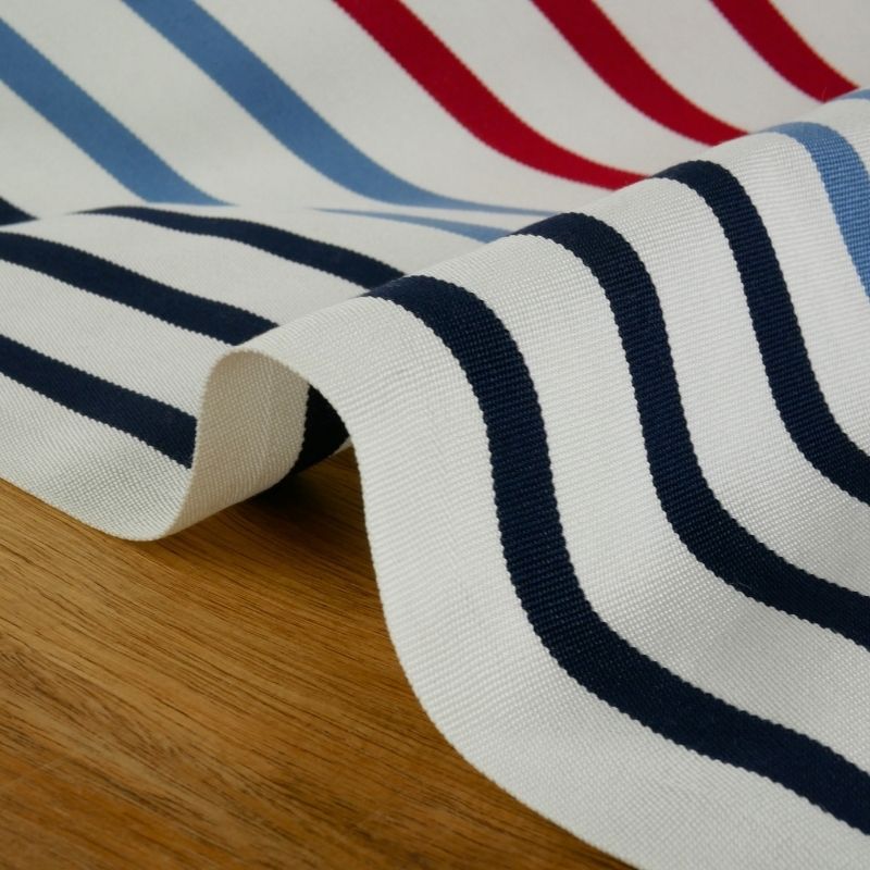 Accompagné d'un traitement anti-UV, ce tissu possède toutes les qualités pour la confection d'accessoires et de mobilier de décoration d'extérieur, tels que des chemins ou sets de table, transats, chiliennes, coussins... Ce textile est déperlant, imputrescible et facile à entretenir.