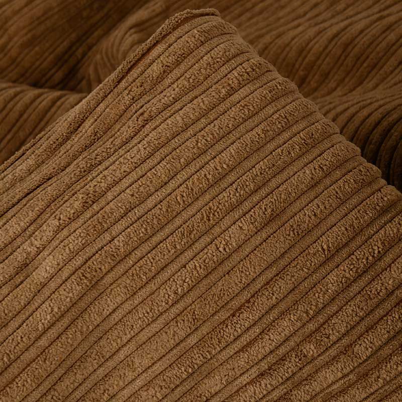 Ce tissu est de couleur marron noisette en velours côtelé, doté d'un envers en fausse fourrure beige.